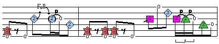 This system of symbols is useful for beginning students - it shows them how to fret the notes, and it also makes the score fun to look at! Click here for more details about Ad-Tab in MusEdit.