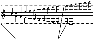 These notes are beyond the vertical exent of the staff line